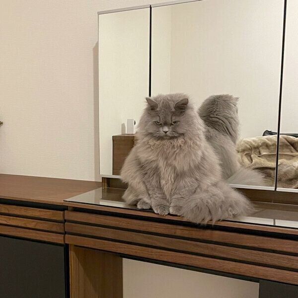 そんな勘吉さんは、飼い主さんが在宅勤務をしているときには「ナデナデして」の圧をかけてくるといい、飼い主さんがなでるまで圧は続くのだとか(笑)
