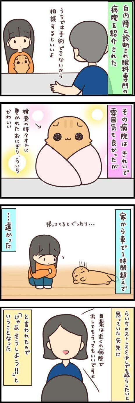 ●目薬は進行を遅らせるものだけど、目薬をしていても一週間で真っ白になって見えなくなる子もいる。