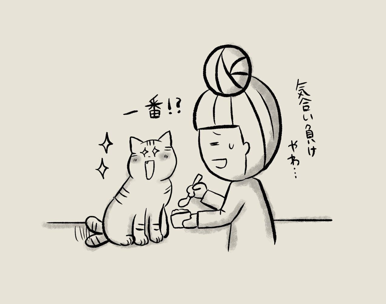 あまりの熱心さに気合い負けしたおかーさんは、最近はその根性を認め、一番最初にご飯をあげるようになりました。