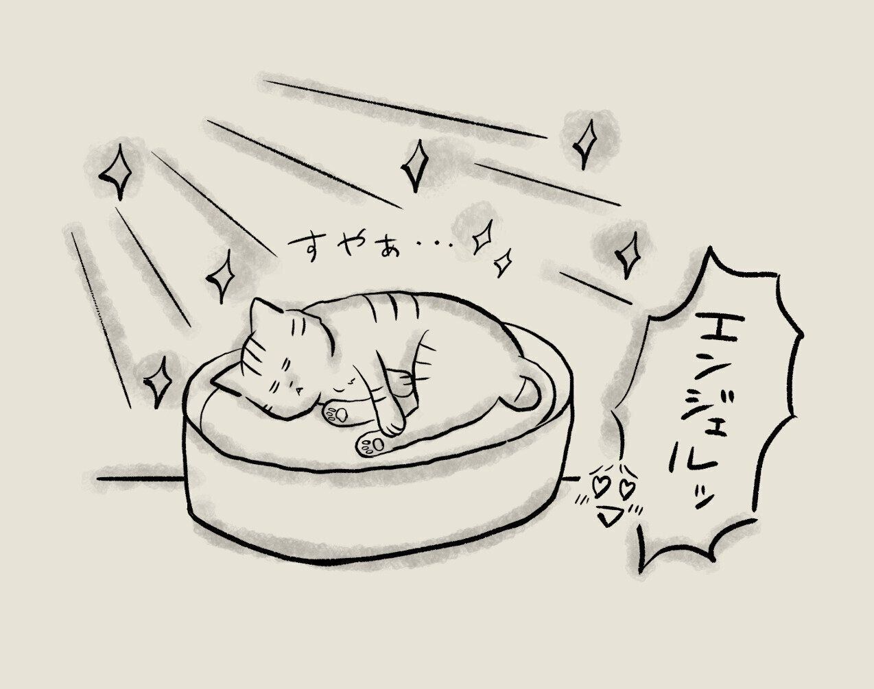 すこやかに眠っていた猫様、起床のお時間を迎え衝撃が走ります…