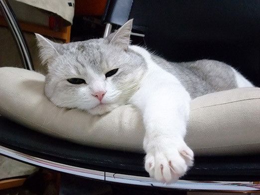 『かわいいなぁ♪』とももちろん思いますけども、仕事中だったり、どうしてもそのイスが必要な場合は『はい、どいて〜ゞ( ̄∀ ̄*)』と言いますね。