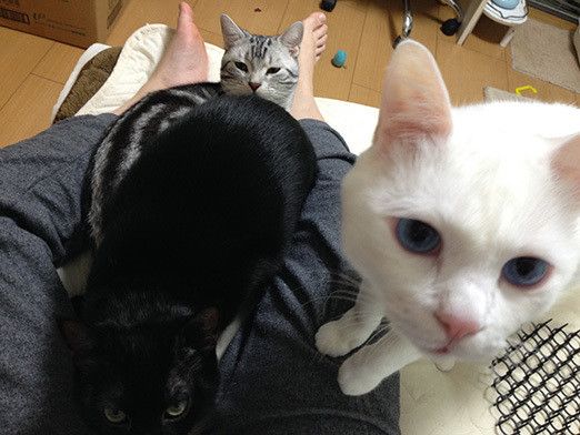 どうやら、他のニャンズがセツ氏の行動を真似しているようです。