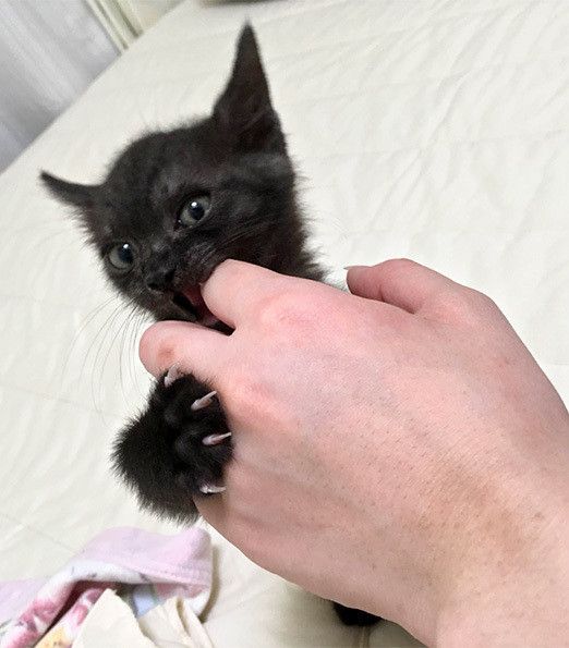 私にとってもこのくらいのチビ猫は初体験で、いろいろ戸惑いもあります。