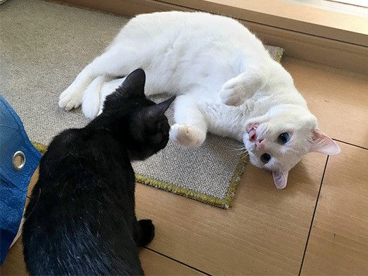本日は、攻めまくってるフレッシュな新入りの、先住猫との関係性についてお話したいと思います。