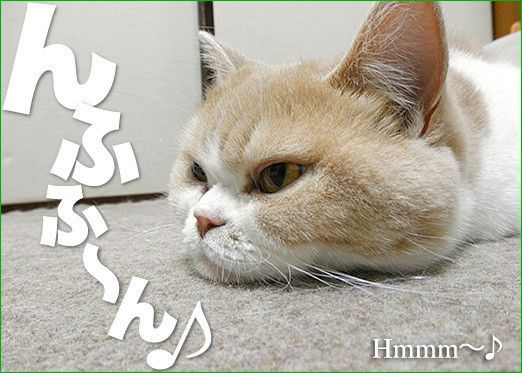 香箱座りから、首を伸ばして床にあごをぺちゃ〜っとつけた姿勢です。