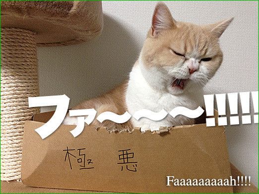 ※ 極悪箱とは小雪が大好きな場所のひとつである。箱に入っている姿を見て飼い主が「極悪」と書き足した。中に入るとよりワルな顔に見えるのだ。