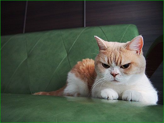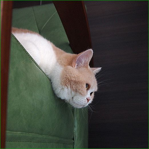 During hot summer months, Koyuki prefers the smooth texture of the sofa.
