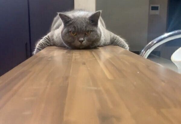 「じつは、この日はいつもより2時間くらい早い消灯でした。普段のこの時間は夫婦で晩酌をしていて、とろろはテーブルに乗ってきて近くで佇み、話しかけられたりなでてもらったり、オヤツをもらったりしています。