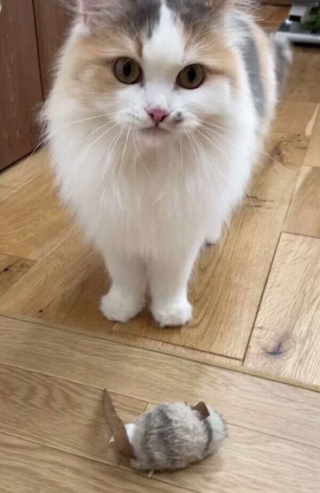 おもちゃのネズミを飼い主さんにお届けする猫 「プレゼント」の様子が可愛すぎると反響