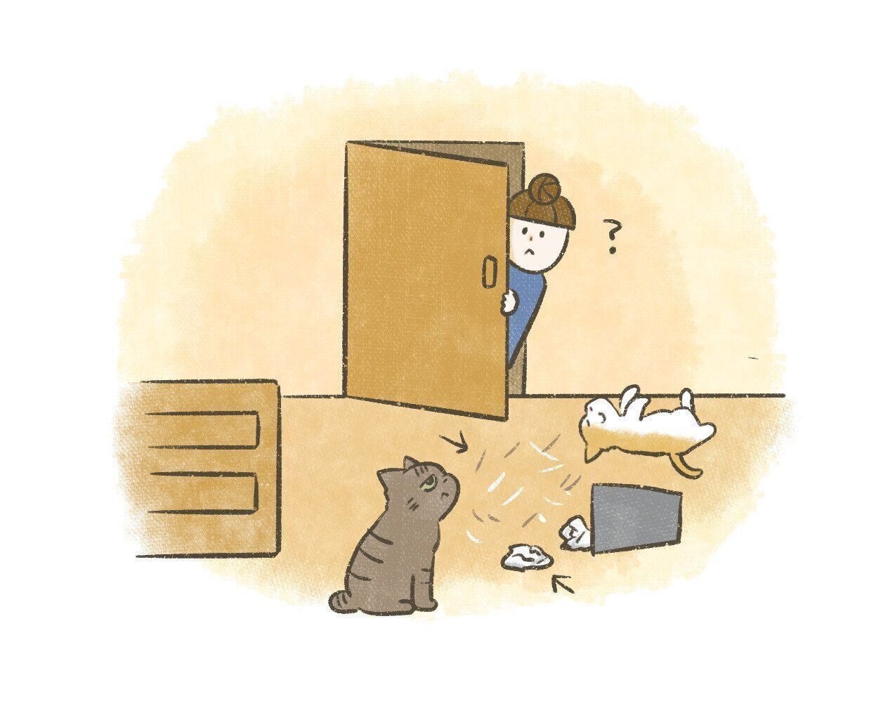 棚に置いてたものが床に落とされているのが確たる証拠。