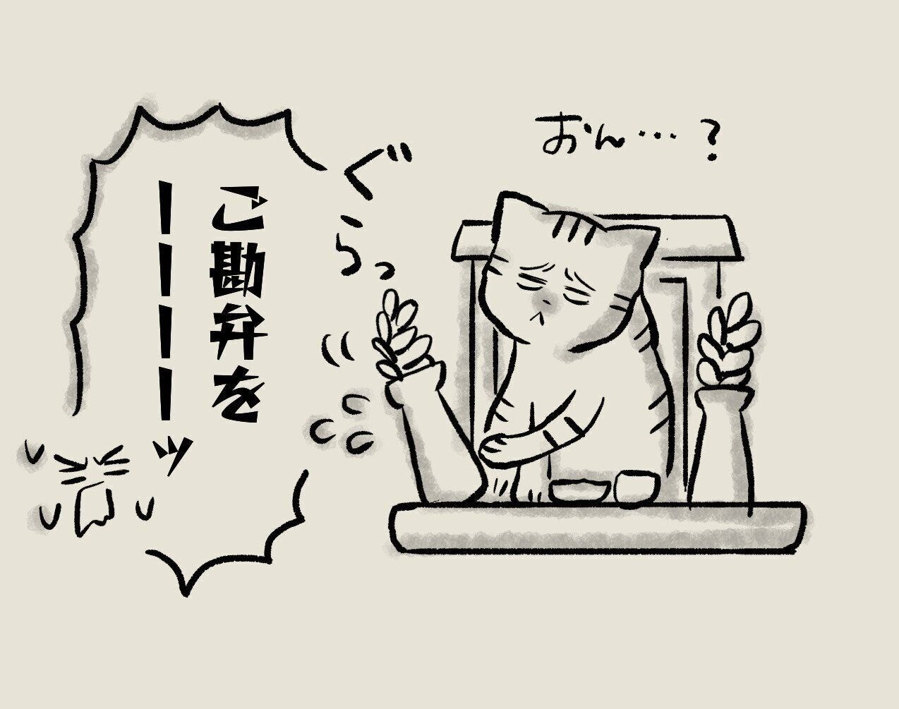 神棚にまつっている花瓶やらの神具に手を添えて、物言わぬ圧をかけてくるたまちゃん…