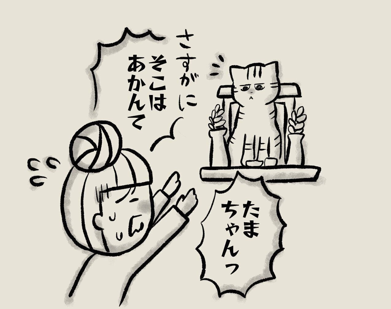 上下運動ならキャットタワーがあるのに…なぜわざわざ神棚に。