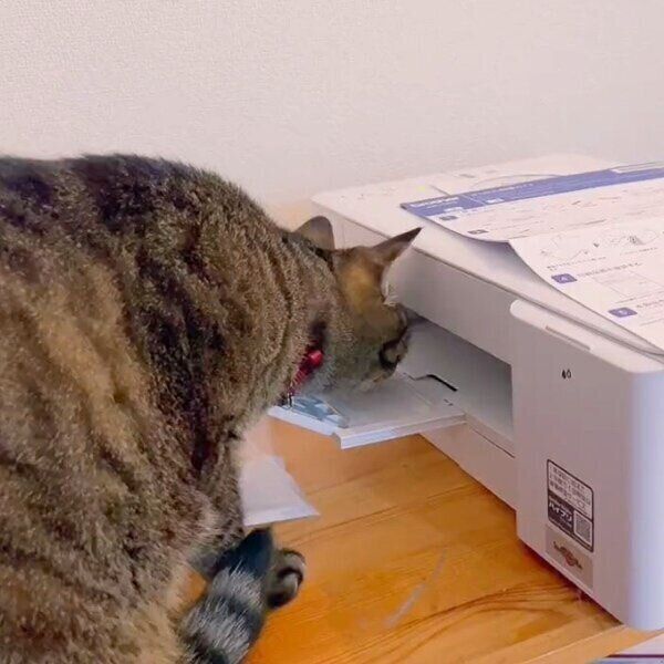 こんな感じで座った体勢で片足をあげて毛づくろいをすることはよくありますが、さすがにこういう構図は初めてで。ぬいぐるみにじゃれたあとの『虚無タイム』みたいになったときに、たまたまこうなったのかもしれません(笑)」