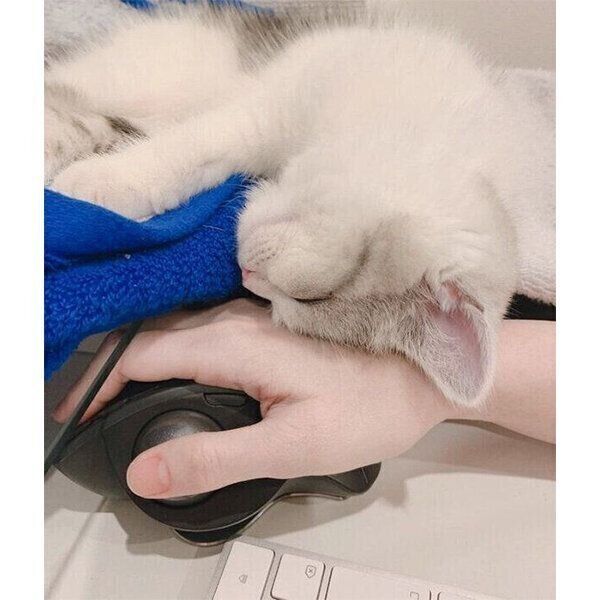 この日も、ぷくりちゃんはお気に入りの寝床で寝ていたそうですが、パソコンの隙間から枕にしているタオルを抱えてぴょっこりと出てきたといい、動画はそのときの様子を撮影したものだったそうです。