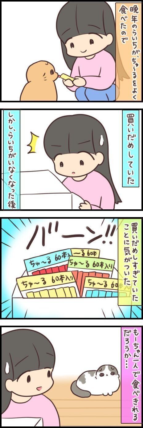 大量に買いだめしたおやつ。1匹だけで消費できるかな…と思ったけれど【連載】もふもふスコたん#302