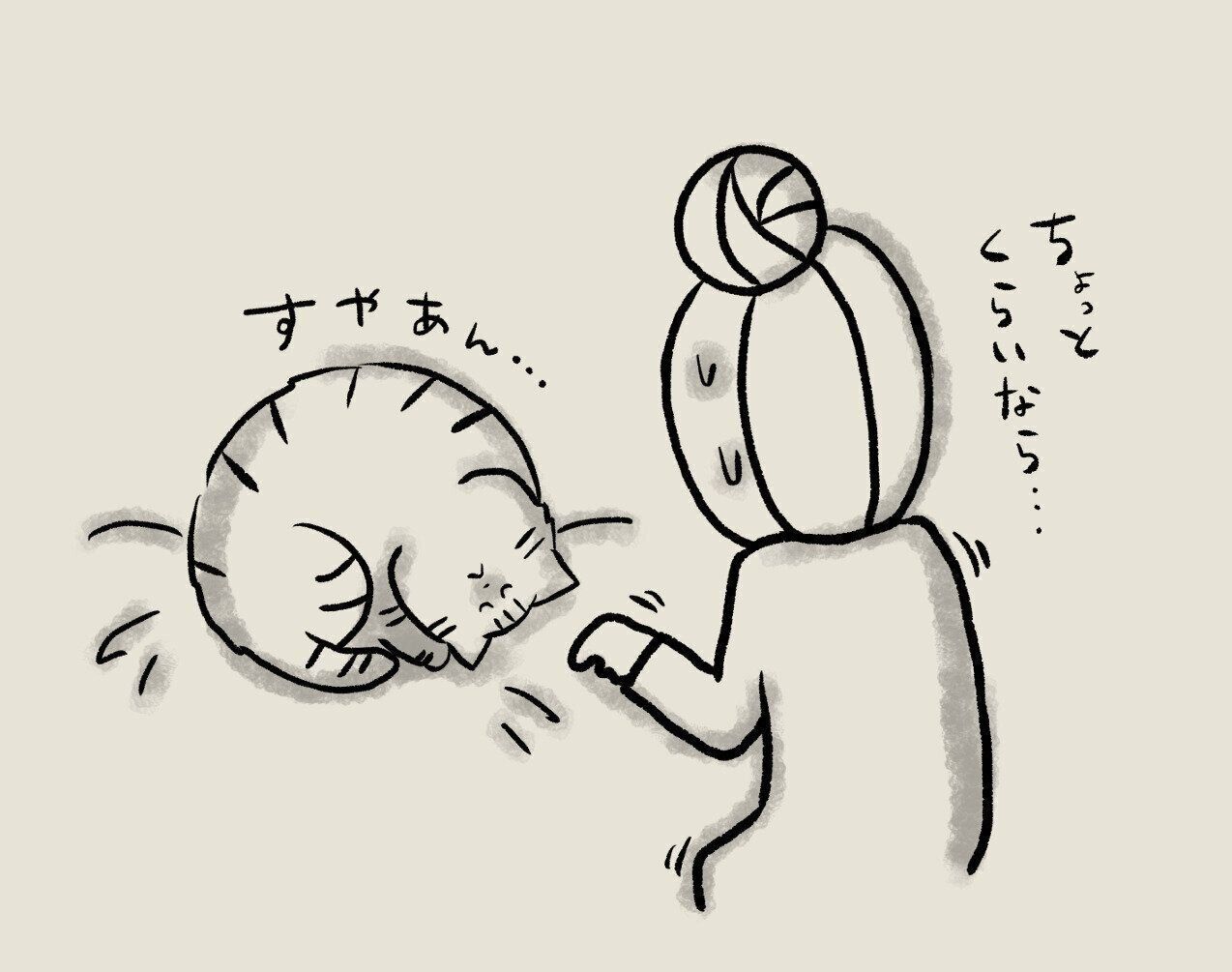 手を入れてしまうと、気持ちよさそうに眠っているところを邪魔してしまうかもしれない…