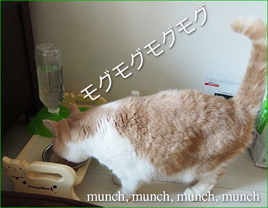 The moment I put the bowl on the tray, she held her tail high in the air and dug in with her whole heart and soul.