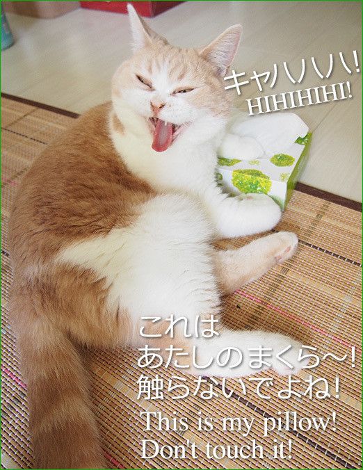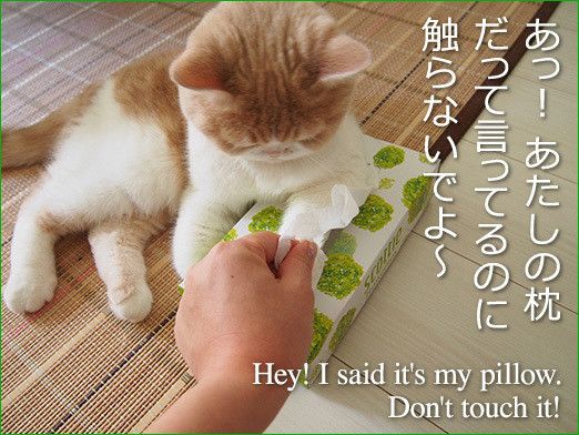 Koyuki uses a variety of things as a pillow such as cushions, her owner's backpacks and bags, but her favorite nowadays is a tissue box.