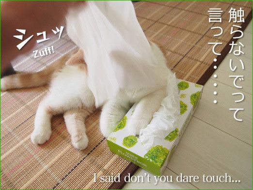 小雪はクッション、飼い主のリュックや鞄など、いろいろなものを枕にしますが、今流行っているのはティッシュの箱を枕にすることです。