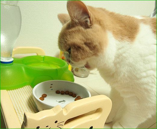 Koyuki has an interesting habit when eating dry cat food. Until now, I thought, "That's normal". But all of the sudden, I started to wonder, "Hm… maybe it's not normal." So I took some photos.