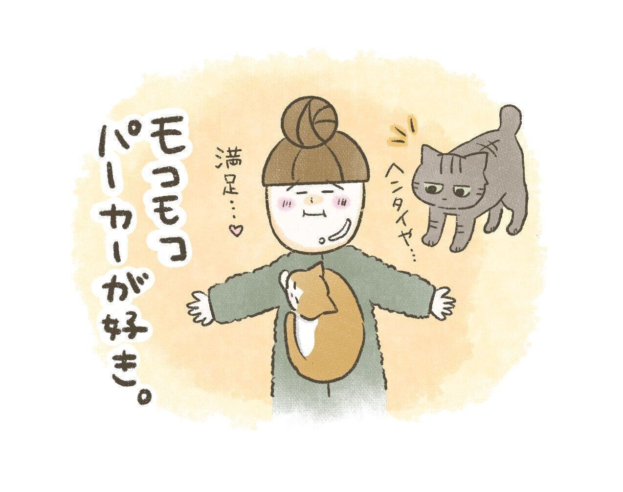 あれを着て寝転んでいると、高確率で猫達がお腹の上に乗ってきてくれるんです。