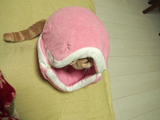 A Macaron bed is a cushion which a cat can crawl inside. Ever since I saw some cat owners using it for their cats on the internet, I was curious. So, finally, I bought it. Let's see how Koyuki reacts to it.