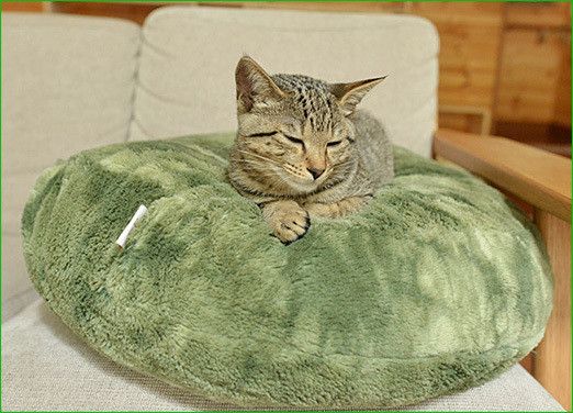 この緑のクッションははなのお気に入りで、ふみふみしたあと、ここで眠ります。