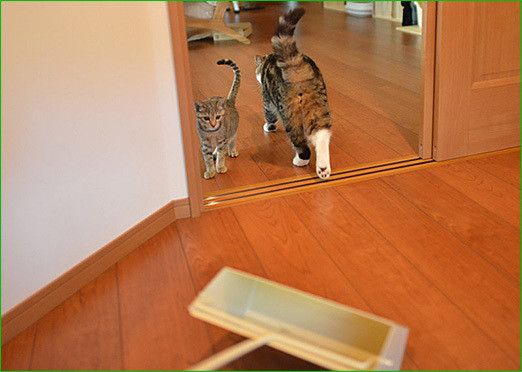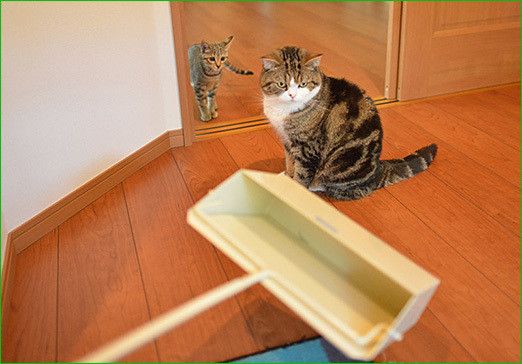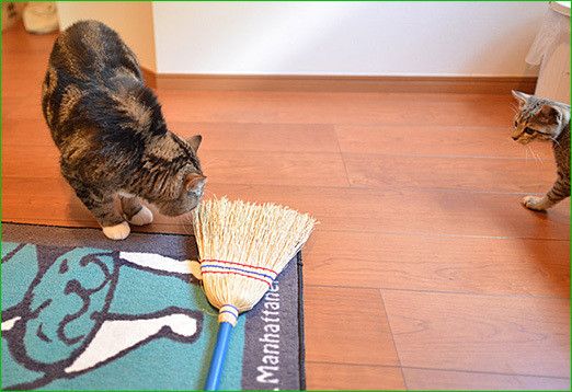 チリトリを見ただけで逃げて行くまる。まるの“恐い”の基準は、未だによくわかりません。