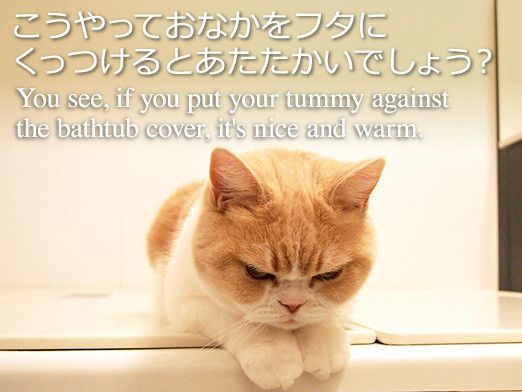 Recently, Koyuki sits in front of the bathroom door when I am filling the bathtub with hot water. She demands, "Let me in!"