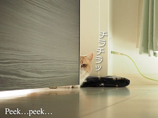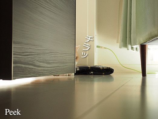 Cats often peek out from their hiding places, but when Koyuki does it, it makes me feel like I'm hunted by her.