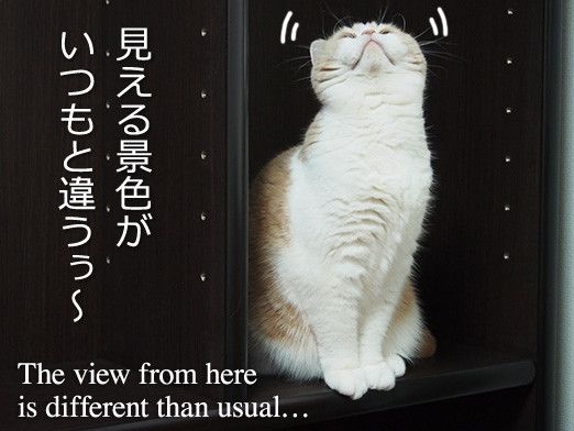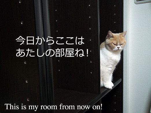 Because of my work, my house is filled with books and documents. I have always sorted them in colored boxes, but now they are overflowing. So I bought a big bookshelf. As soon as Koyuki saw it, she started to explore…