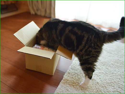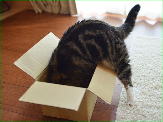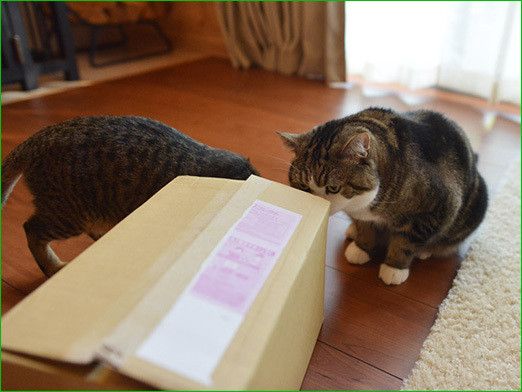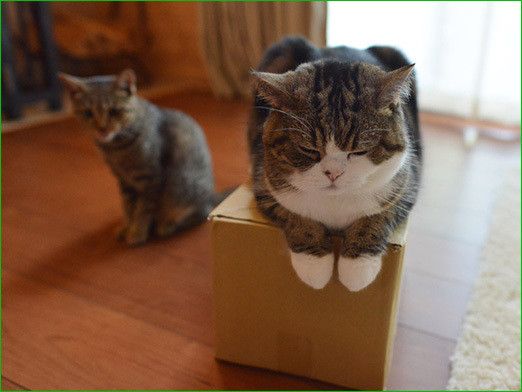 まるは蓋を開けようとしたが開けられず、箱の上に陣取ってしまいました。