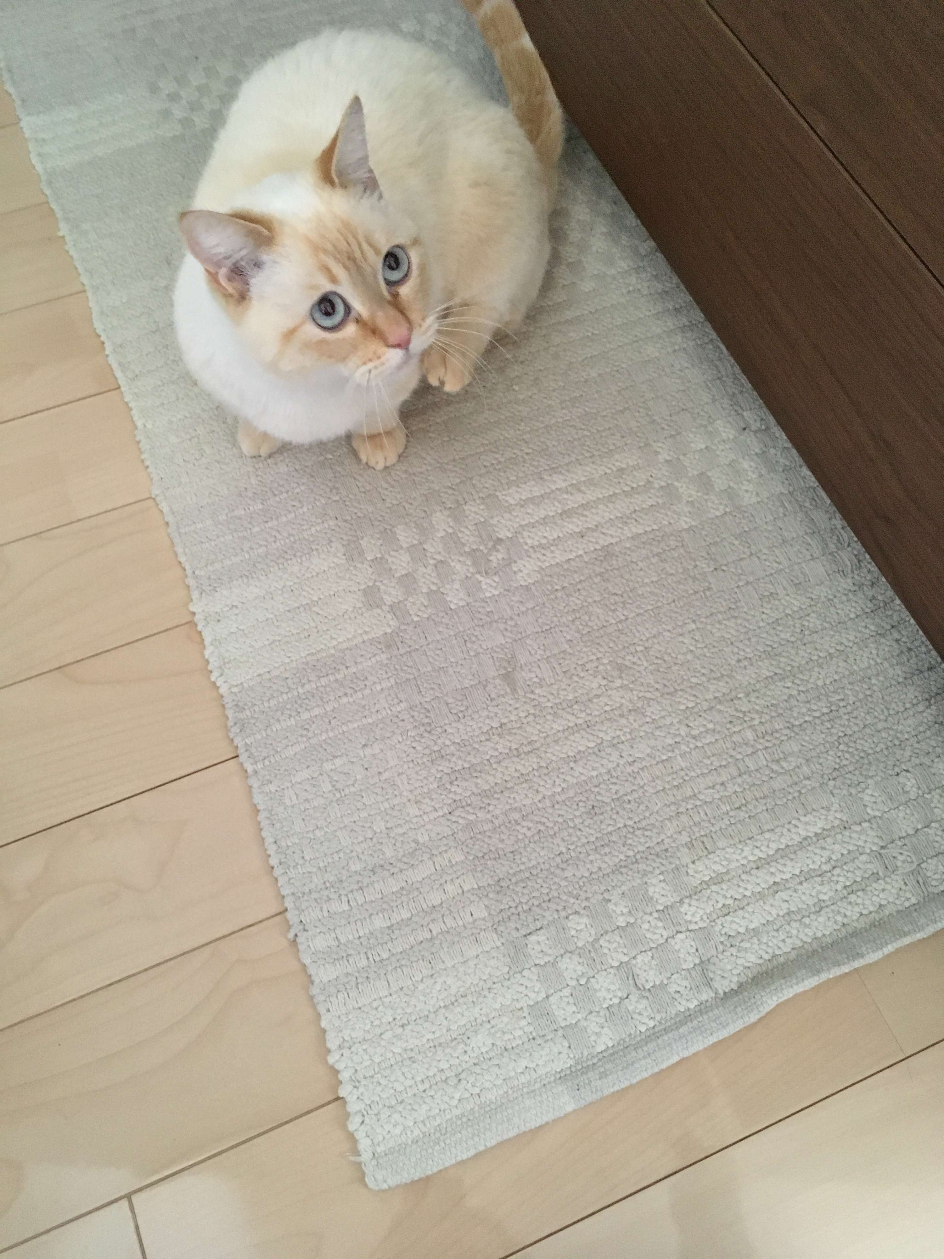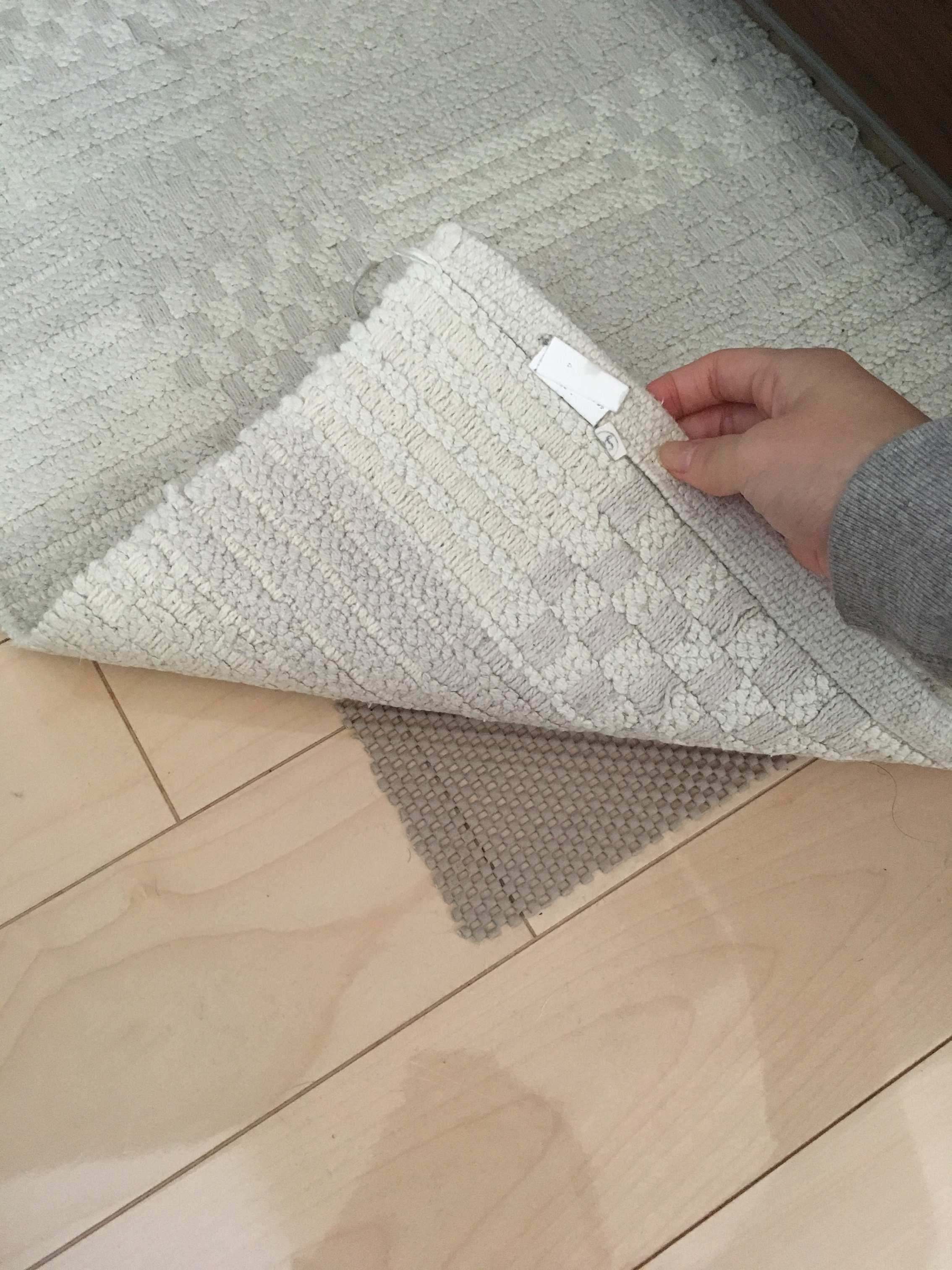 筆者は、リビングにまず大きめのラグを敷いています。さすがにプチプラではありませんが、この1枚があるのとないのでは猫の走るドタバタ音の大きさが全然違います! ラグのおかげで、夜運動会が繰り広げられても、筆者は音に悩まされず寝られるようになりました。また、ラグは床を保護することもできるので、猫の爪跡が床に付かないというメリットも。