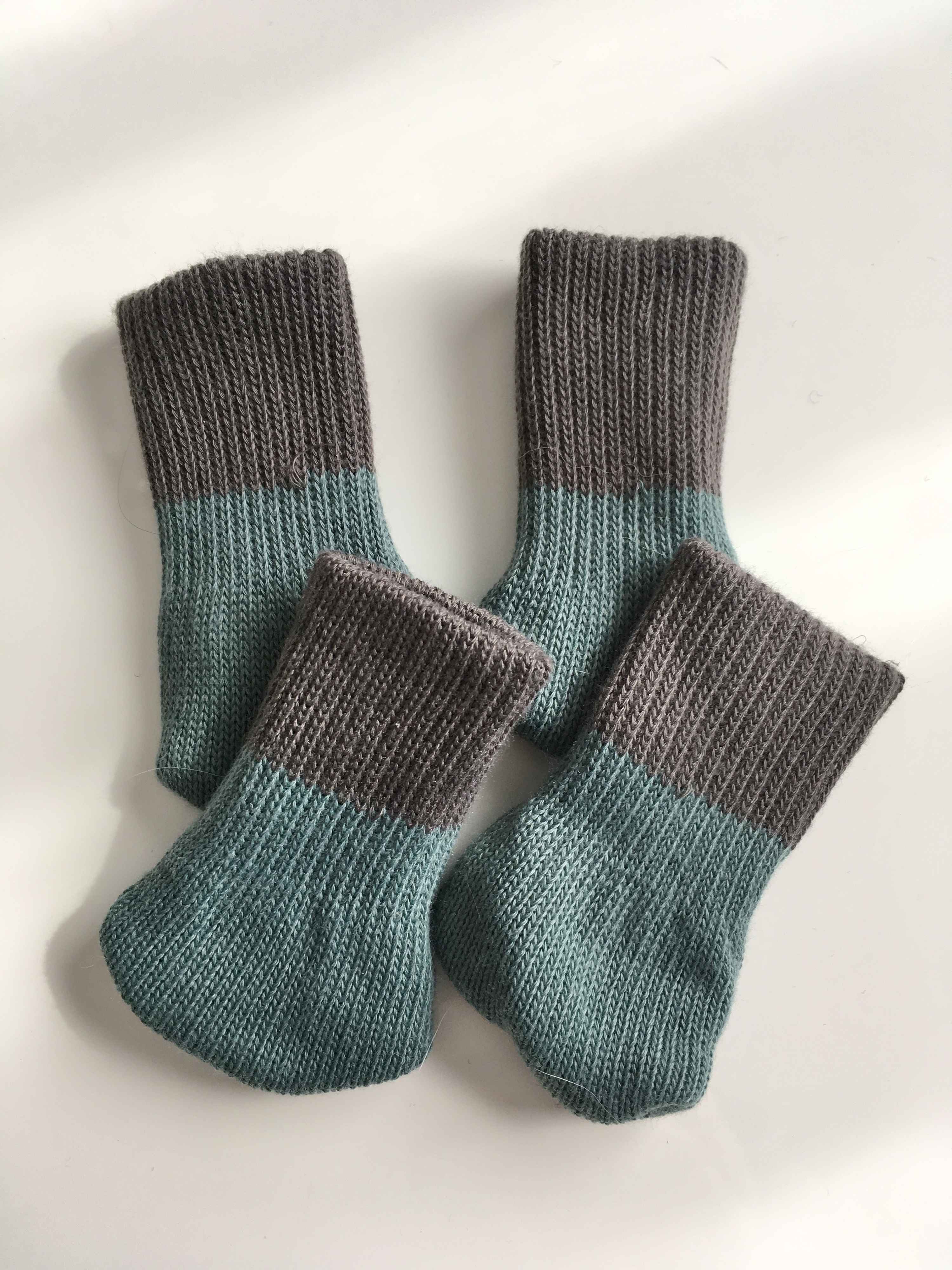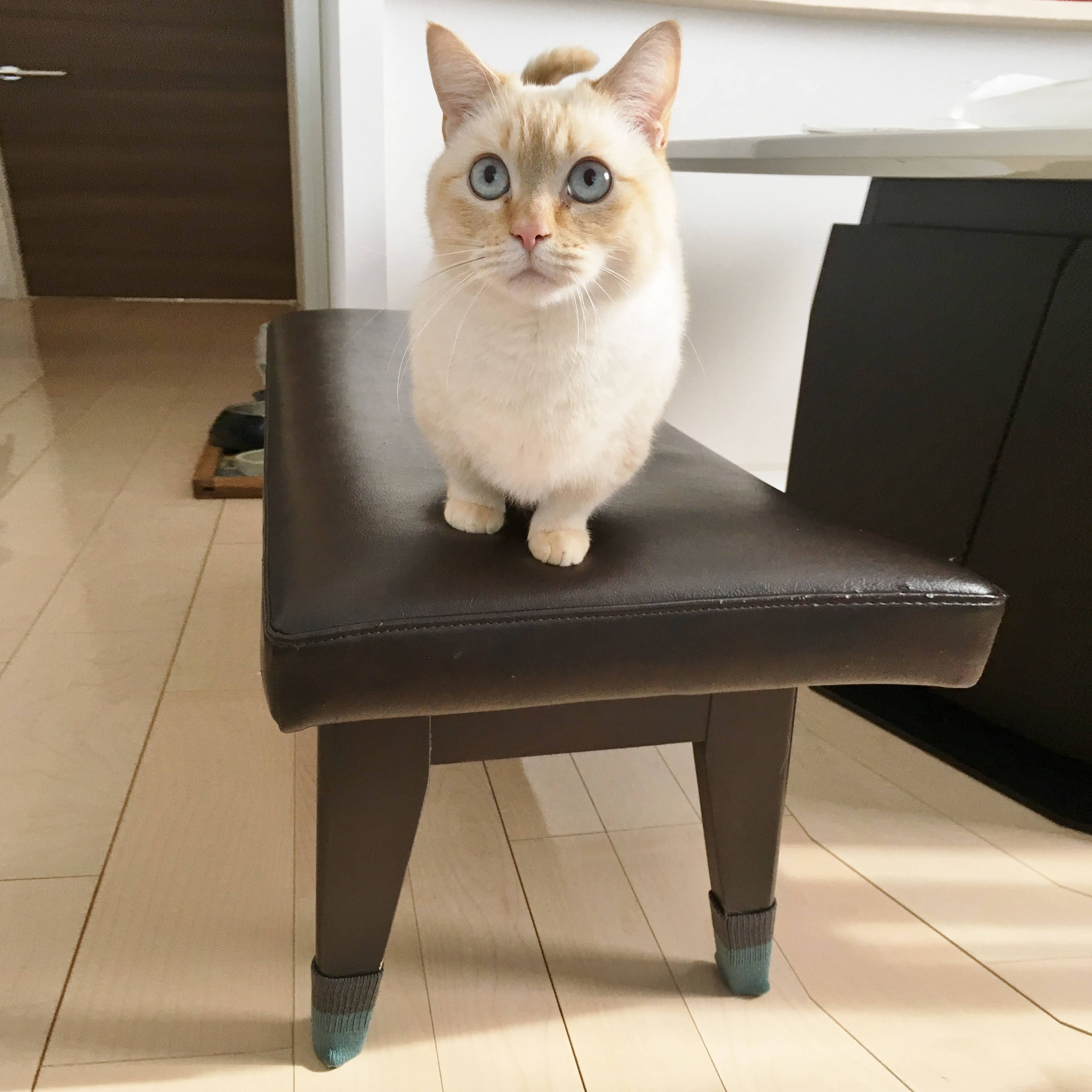 テーブルやイスの脚には、これもまた100円ショップでも売っている、専用“靴下”を履かせています。それがクッションになって、猫が乗ってもがたつきゼロ! イスを引きずったりしても床に傷跡が残らないのも、移動時などには助かっています。