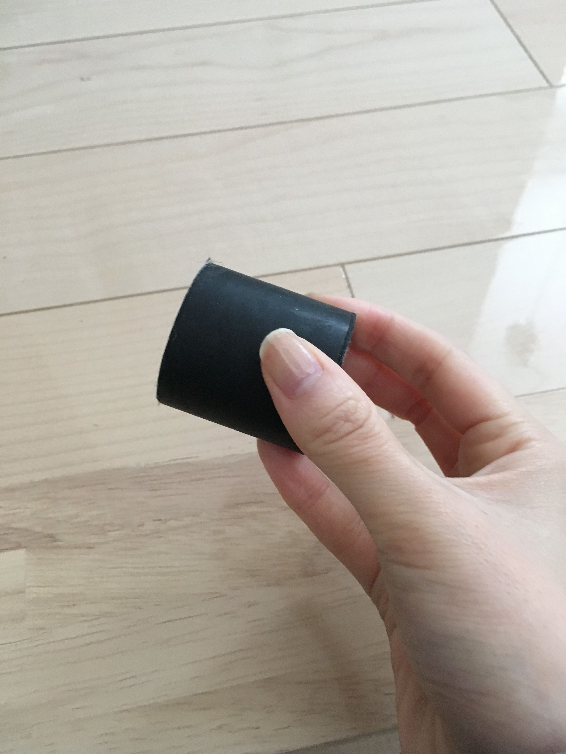なのですが、猫が爪をとぐとがたついてうるさいのなんの! また、お掃除ロボットがよけきれない微妙な段差にも悩んでいたので、ホームセンターなどで数百円で売っている円柱型のゴム材(次の写真)を四隅に設置しました。