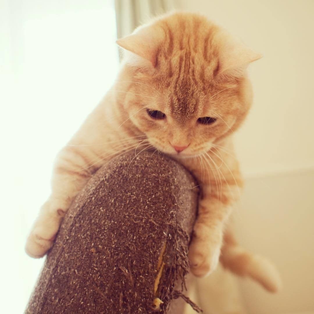 朝起きて伸びをしながらここで爪を研ぐのが日課のぷーちゃん。