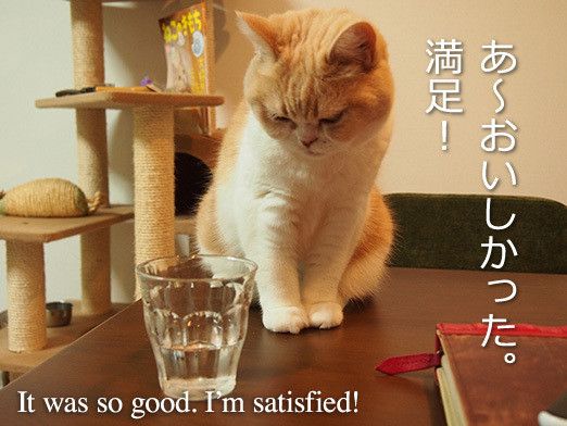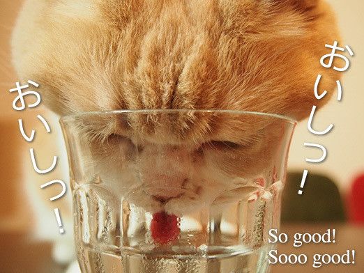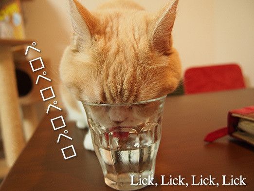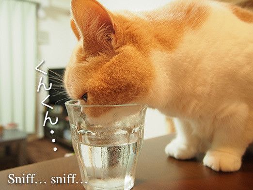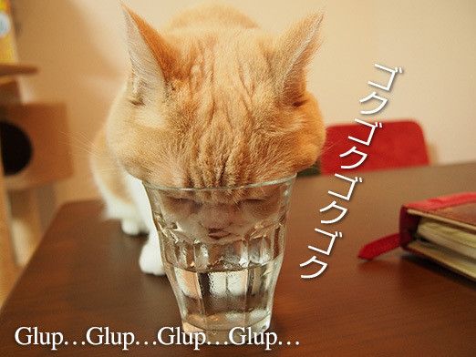 When I am drinking a glass of cold barley tea, Koyuki gets curious and she tries to drink it as well. This is how she does it.