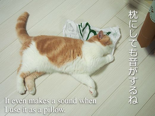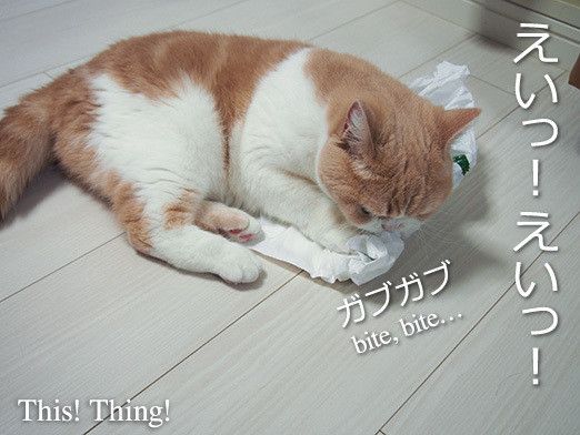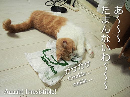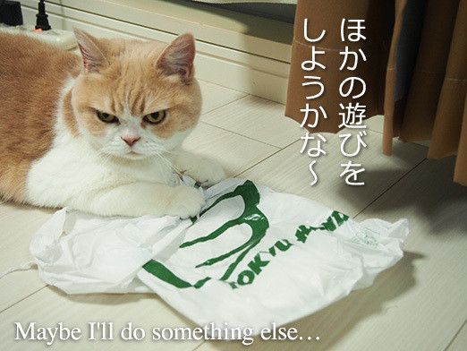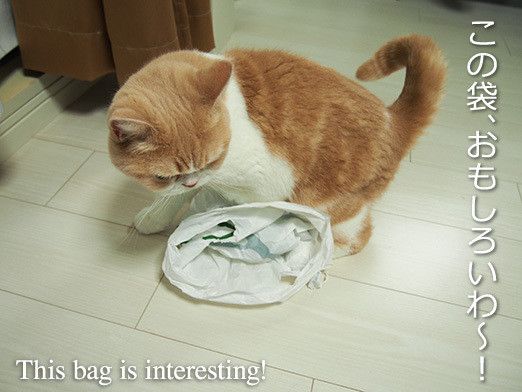 When I turned around, I saw Koyuki playing with a plastic bag.