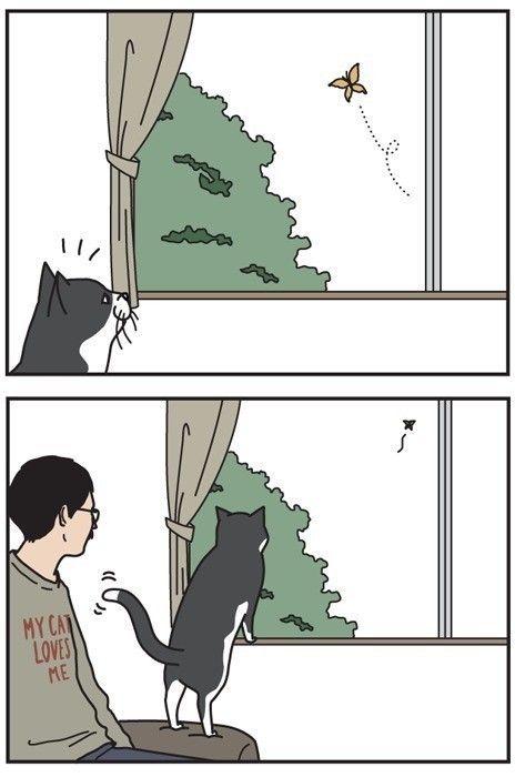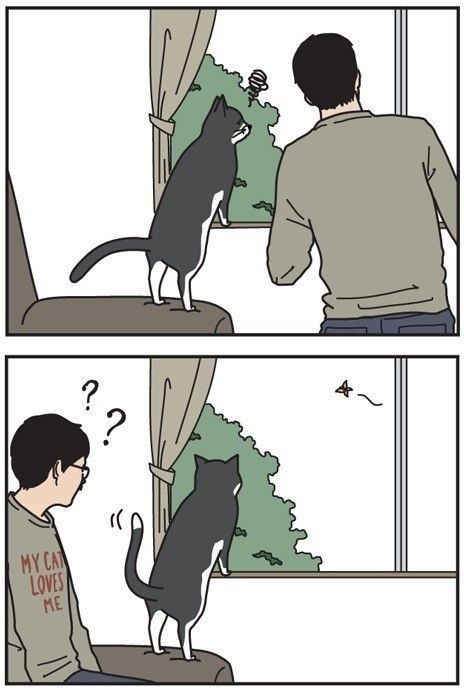 愛猫家の男性と猫が繰り広げる4コマの世界に、あなたもやみつきになること間違いなし!