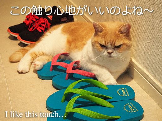 ※Web editorial office caution: Please keep your eye on your cats so that they don't bite off the sandals and swallow the pieces by accident.