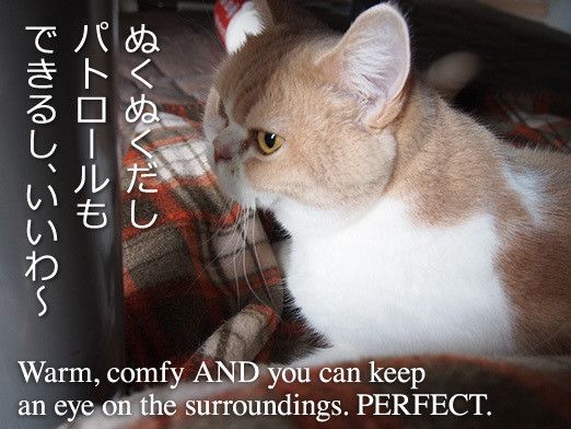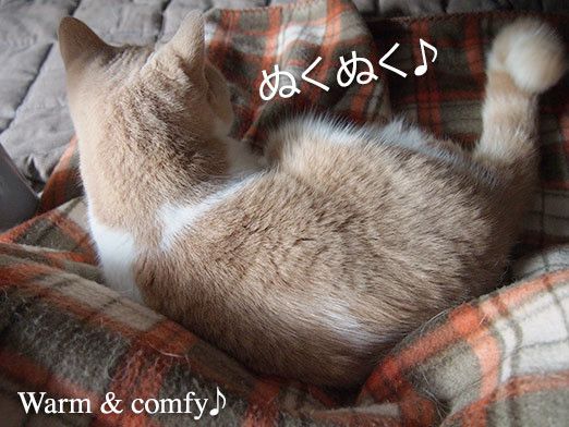 It's getting colder. I'm now often working with my laptop on the dining table rather than with my desktop on the desk. With a blanket on my lap, I'm warm enough to get going with my work without turning on the heater. But somebody is always watching for the chance to jump onto my lap…
