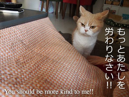 *Kotatsu: A small low table with an electric heater attached underneath. A quilt or a blanket is draped over it to retain heat.