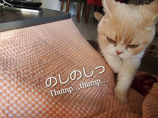 コタツのぬくもりとひざのぬくもり、両方を味わおうという魂胆ですね。