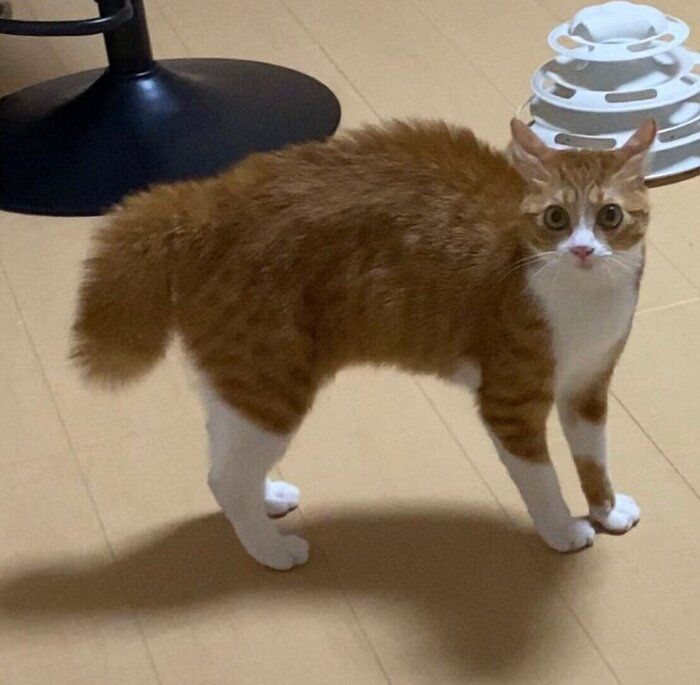 隠れんぼ中に飼い主を見つけてびっくり!? 猫がしっぽを「ボワァ!」と膨らませる瞬間をおさめた動画が話題に