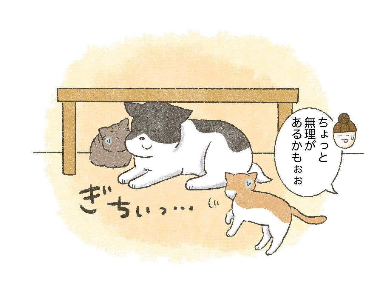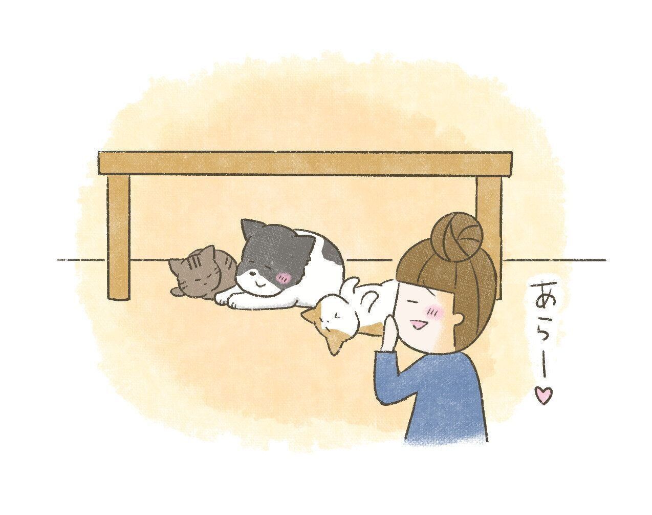 ある日、いつも通り猫に紛れて無理やりローテーブルの下で眠っていたのですが…。