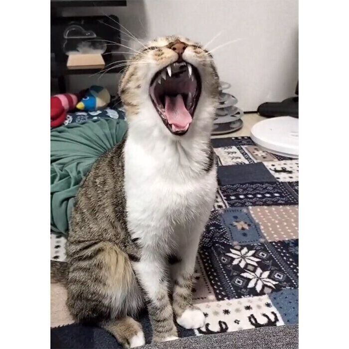 「テトは、床に転がって伸びるとお腹をモフってもらえると学習している様子です。遠くからでもテトが伸びているのが見えたら、急いでモフりに行きます。バリバリボウルにいるときに体をなでると、お腹を見せて転がったりする姿も見られます」