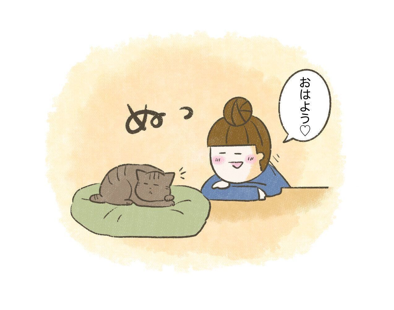 半分寝ぼけているたまちゃんにも『おはよう』。