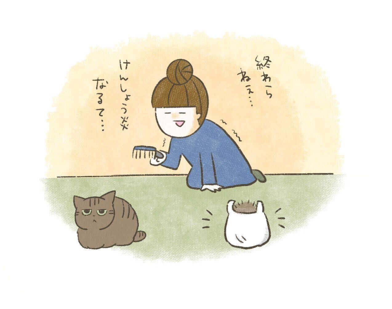 腕に限界を感じつつ、体中が毛にまみれつつ、せっせと猫達のブラッシングをしていたおかーさん。