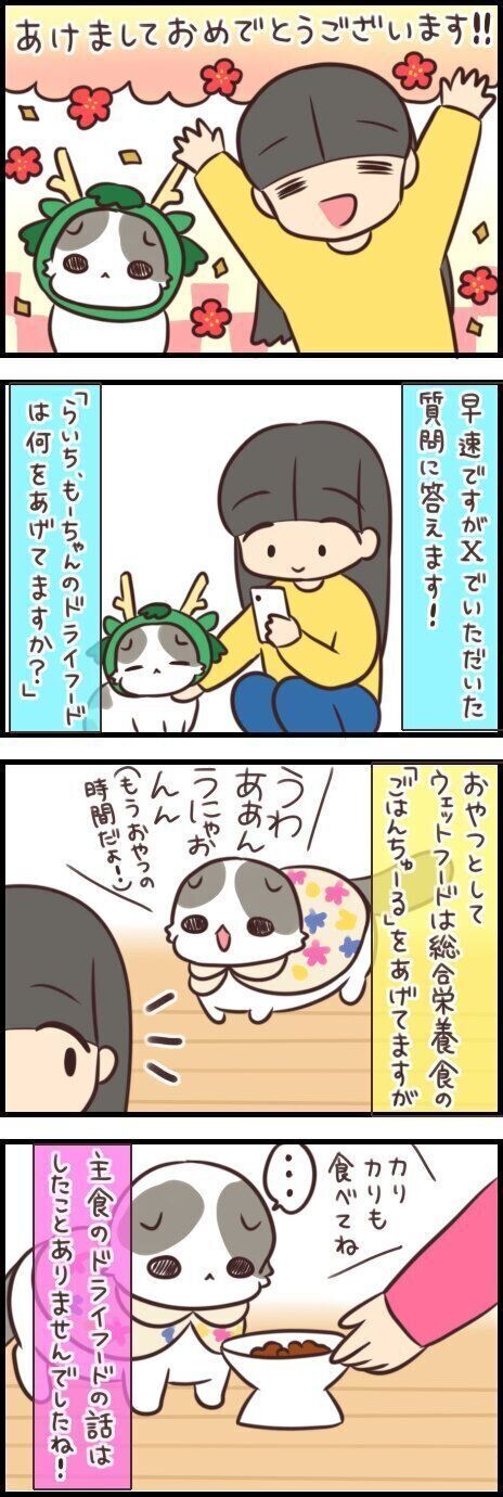 質問者さんは「らいちもーちゃんのドライフードは何をあげていますか?うちは三ツ星グルメ以外食べてくれません。」といただきました!