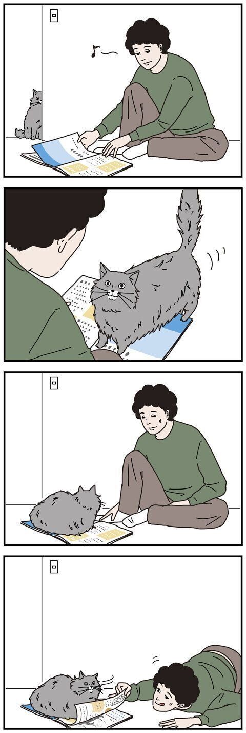 新聞紙や雑誌、段ボール···吸い寄せられるようにそれらの上に鎮座するのです。